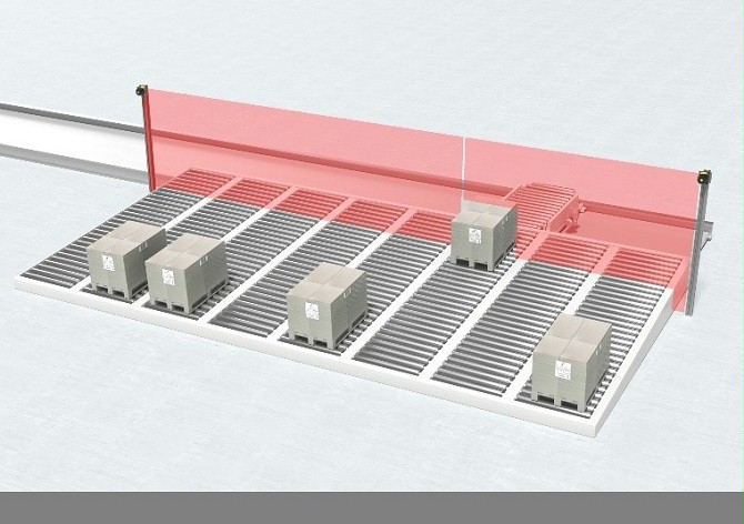 作為創(chuàng)新優(yōu)化方案,勞易測(cè)提供了能夠以更緊湊方式實(shí)施的基于激光掃描儀技術(shù)的創(chuàng)新多軌道安全防護(hù)解決方案。工作原理是:兩部安全激光掃描儀安裝在輸送軌道上方,可在所有軌道上創(chuàng)建垂直保護(hù)區(qū)域。托盤通過(guò)軌道后,安全激光掃描儀的保護(hù)區(qū)域?qū)?huì)切換到其對(duì)應(yīng)起始位置,如有必要,也可為兩個(gè)鄰近軌道提供防護(hù)區(qū)域,以允許兩個(gè)托盤(雙托盤)同時(shí)通過(guò)。此外,還可以將不同大小的保護(hù)區(qū)域存儲(chǔ)在控制裝置中。該解決方案基于勞易測(cè)創(chuàng)新的智能門控系統(tǒng)(SPG),可防止人員進(jìn)入,而無(wú)需使用其他屏蔽傳感器。